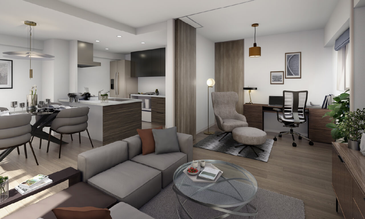 ※掲載のバルコニー完成予想図は2024年9月に撮影した14階の眺望写真にバルコニーをCG合成加工したもので実際とは異なります。※周辺環境・眺望は将来にわたり将来にわたり保障されるものではありません。※掲載の外観写真は2024年9月に撮影した写真に外観完成予想図をCG合成加工したもので実際とは異なります。※掲載のエントランス・エントランスホール完成予想図は図面を基に描いたもので、外観・外構・植栽・色彩等は実際とは異なります。植栽につきましては特定の季節の状況を表現したものではなく、成長した状態の予想図及びイメージイラストであり、描かれた状態に成長するまで、一定期間必要となります。また、現地周辺の建物等を省略して描いております。※行政官庁の指導、施工上の都合及び改良のため、設計・仕様・外構工事等に変更が生じる場合があります。 ※掲載の敷地配置図は計画中のものです。今後の設計変更により形状等、変更となる場合があります。予めご了承ください。※掲載の立面図は周辺の立地を概念化し描き起こしたもので、地形・起伏・建物の大きさ・距離・方向・眺望等は実際とは異なります。また、建物の形状・色等は実際とは異なる場合があります。形状の細部、設備機器等は表現していません。敷地周辺の建物などについては省略しています。周辺の建物・道路等は省略・簡略化しています。※1 駐車・駐輪できるものには制限がございます。※掲載の写真は一部メーカー支給のイメージ画像を使用しています。予めご了承ください。ラクセスは美和ロックの登録商標です。※掲載の内容は2024年10月現在のものです。